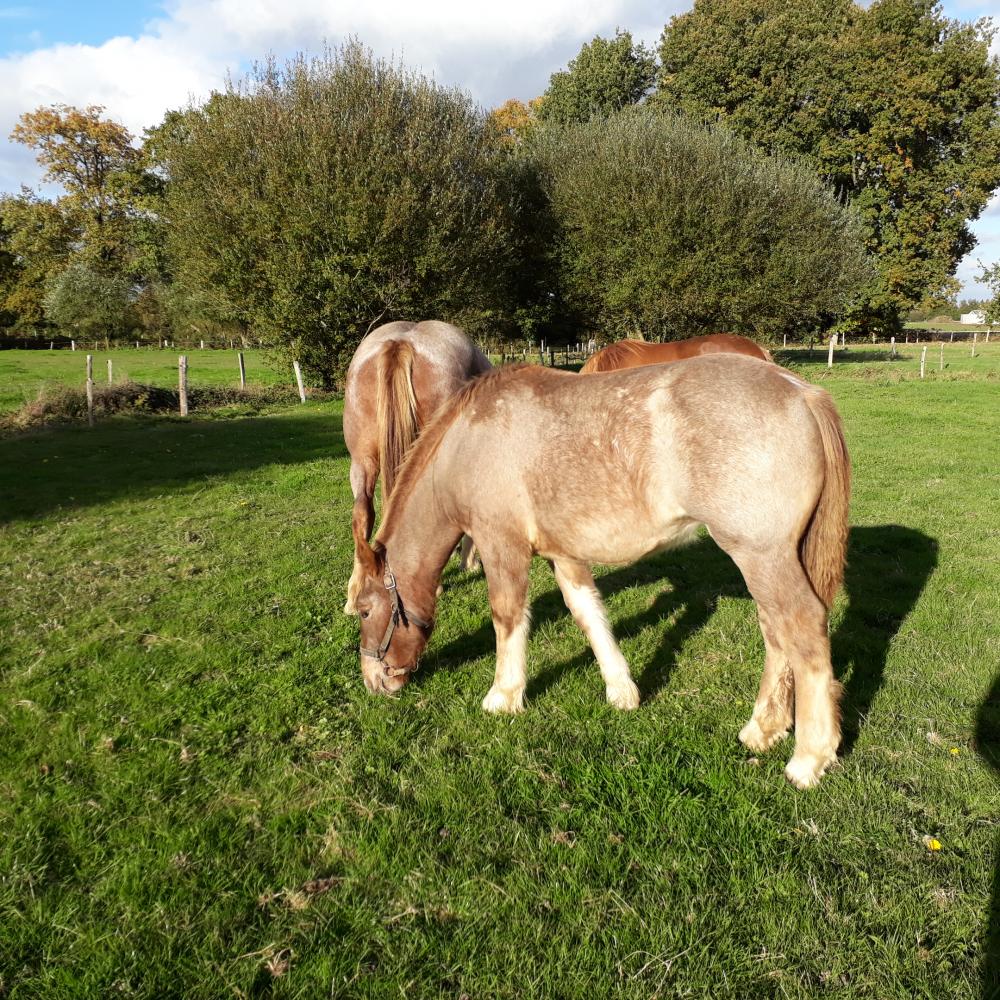 INDIENNE DE L'AUNAYSexe : FemelleRace : Trait Breton Robe : Alezan Taille (cm) : Né(e) le :29-03-2018 Prix de vente : Prix non communiqué Belle pouliche postière de 2 ans de DIABOLO DE CHEVALERIE AUBERE. Douce et famillière facile à licoler, se déplace et sera de bonne taille, vermifugée fin avril 2020 et pieds parès à l'anglaise fin avril 2020, fin juin 2020. Idéal attelage, selle ou pour élevage. Très bons aplombs. Prix de marché au plus offrant. Export possible, nous nous occupons des papiers sanitaires et carnets de route à l'export. Faire offre pour la pouliche de 2 ans Indienne libre de suite, autres juments avec ou sans poulain libres de suite également.